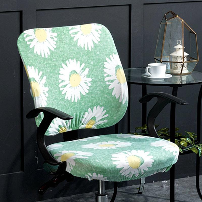 Эластичный раздельный чехол для стула, Чехол для компьютерного вращающегося стула, Чехол для стула, Чехол для офисного стула, Чехол для подушки сиденья - Модель с принтом Chair Back Cover + Chair Surface Cover 2PCS/SET зелёный