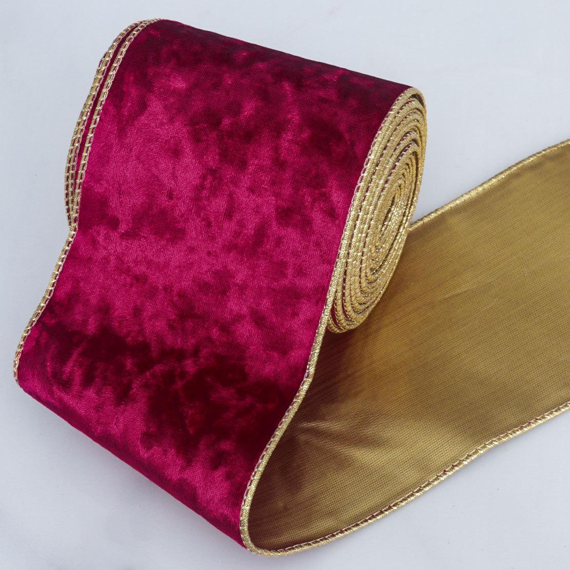 Элегантная бархатная лента Копировальная проволока Золотая лента Рождественские елочные венки Декоративные банты Материалы Двусторонняя лента с золотым фоном Украшение для дома 10cm*10 yards
