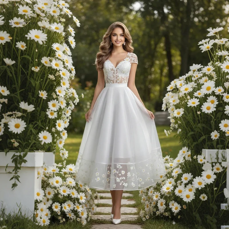 Элегантная белая длинная юбка, женская прозрачная юбка трапециевидной формы с вышитым прозрачным корсетом, вечерние платья с короткими рукавами для свадебного гостя