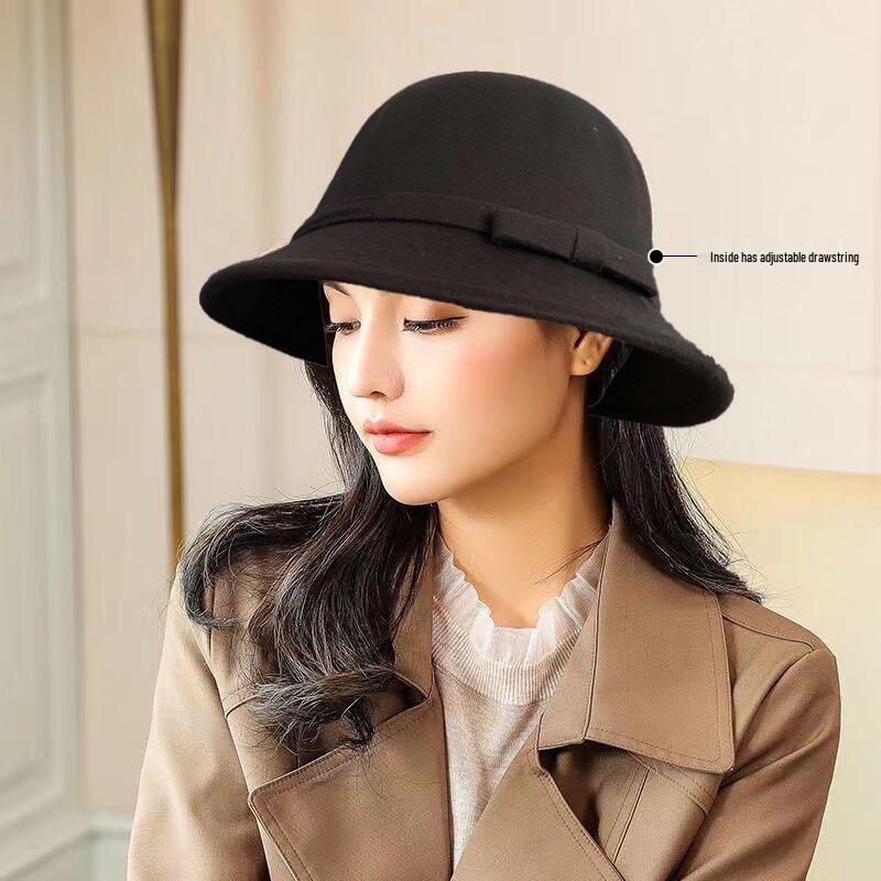 Элегантная женская британская ретро фетровая шляпа-котелок федора из шерсти на весну и осень Adjustable Head Circumference чёрный