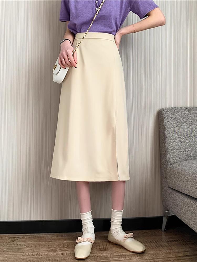Элегантная женская черная юбка миди А-силуэта – Дизайнерский разрез в форме груши для лестного летнего образа 4XL абрикосовый