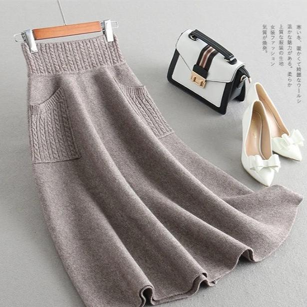 Элегантная женская юбка с карманами однотонная в рубчик весна лето осень универсальная повседневная для официальной одежды M верблюд