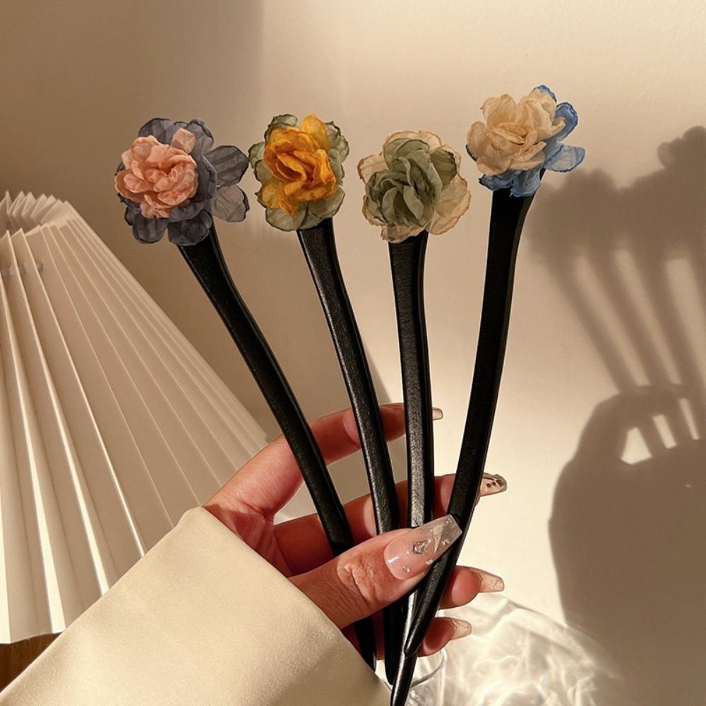 Элегантная заколка для волос в китайском стиле с цветочным принтом, летние аксессуары для волос, модная заколка с камелиями