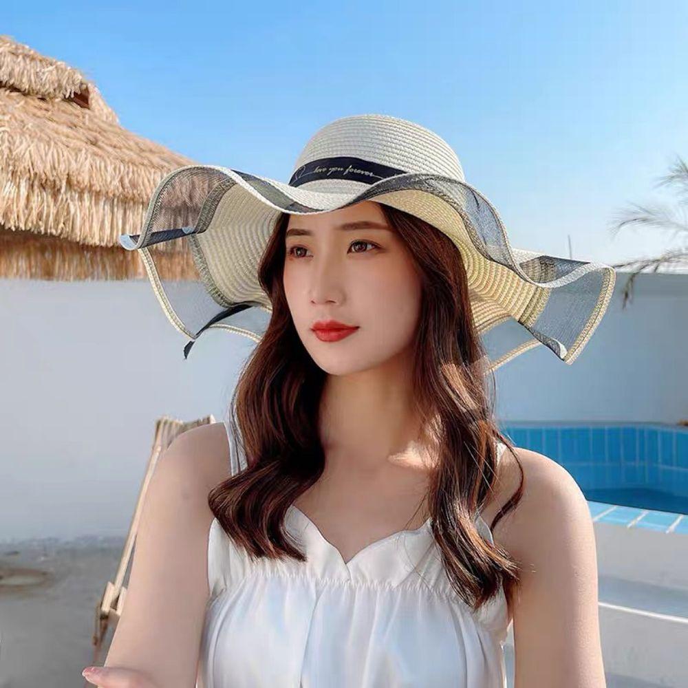Элегантная защитная пляжная складная соломенная кепка с бантом в корейском стиле, женская шляпа, шляпа от солнца
