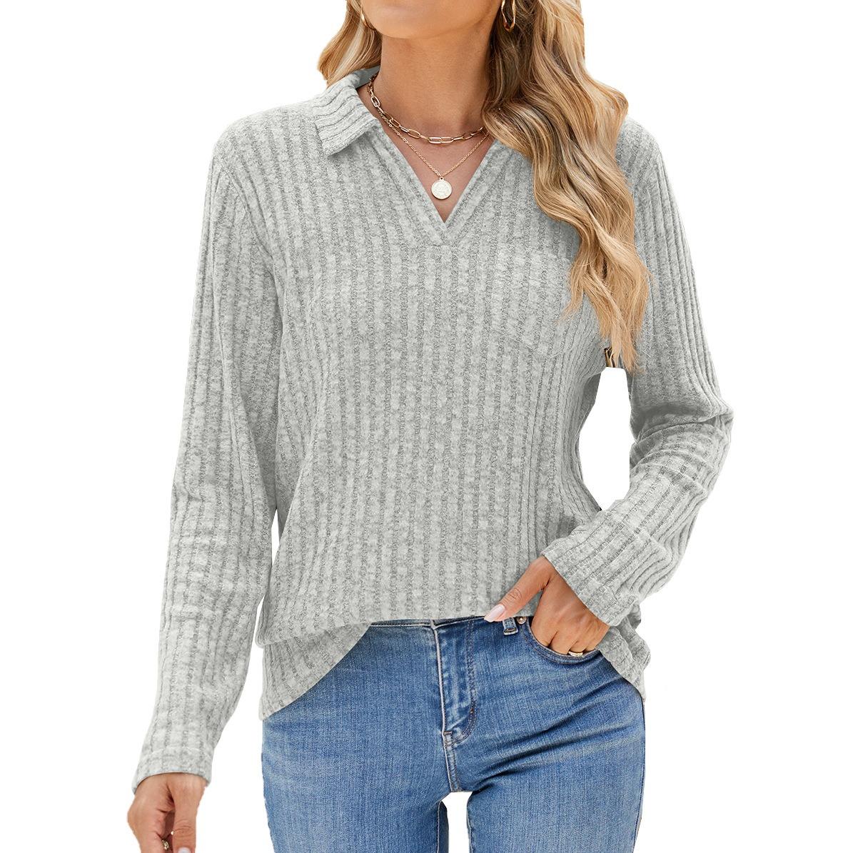 Элегантная и классическая универсальная и удобная осенне-зимняя трикотажная свободная футболка с длинными рукавами и лацканами XXL