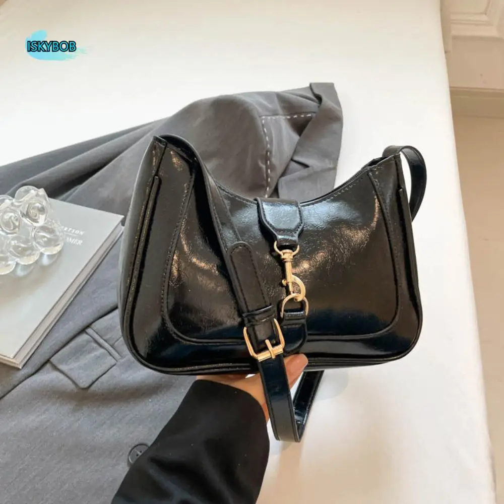 Элегантная лакированная кожаная сумка на плечо с гладкой пряжкой на ремне, женская сумка подмышками, однотонная большая вместительная сумка-клатч в стиле ретро, дорожная сумка