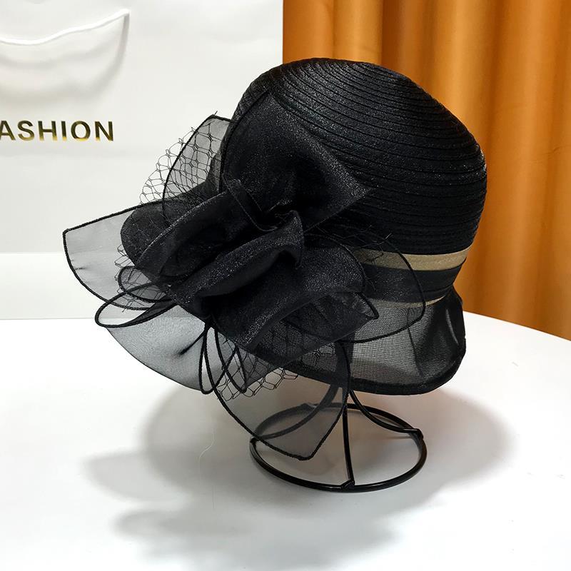 Элегантная уличная шляпа от солнца с цветком и бантом, пляжная шляпа, устойчивая к УФ-лучам, французская шляпа-цилиндр one size чёрный