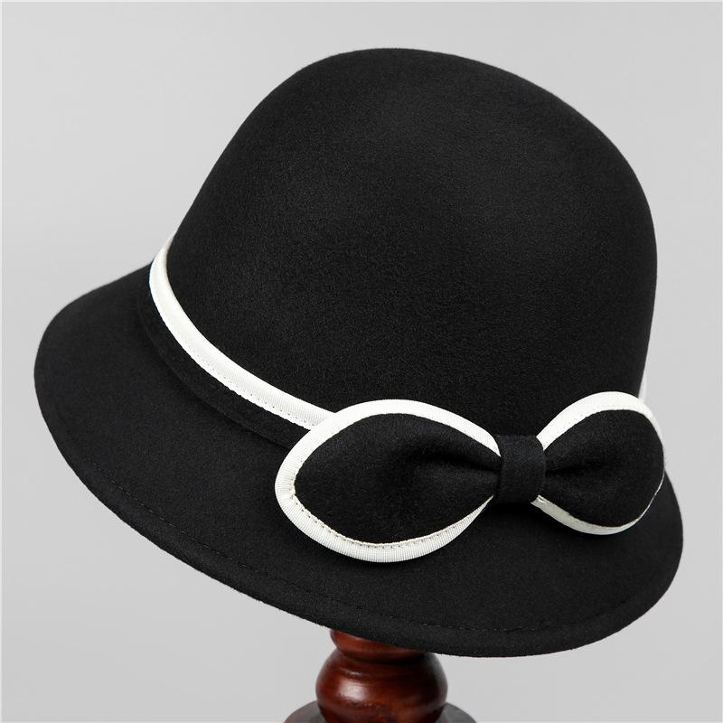 Элегантная фетровая шляпа из шерсти во французском стиле для женщин - осенне-зимняя шикарная легкая фетровая кепка с бантом в стиле рыбалки ONE SIZE чёрный
