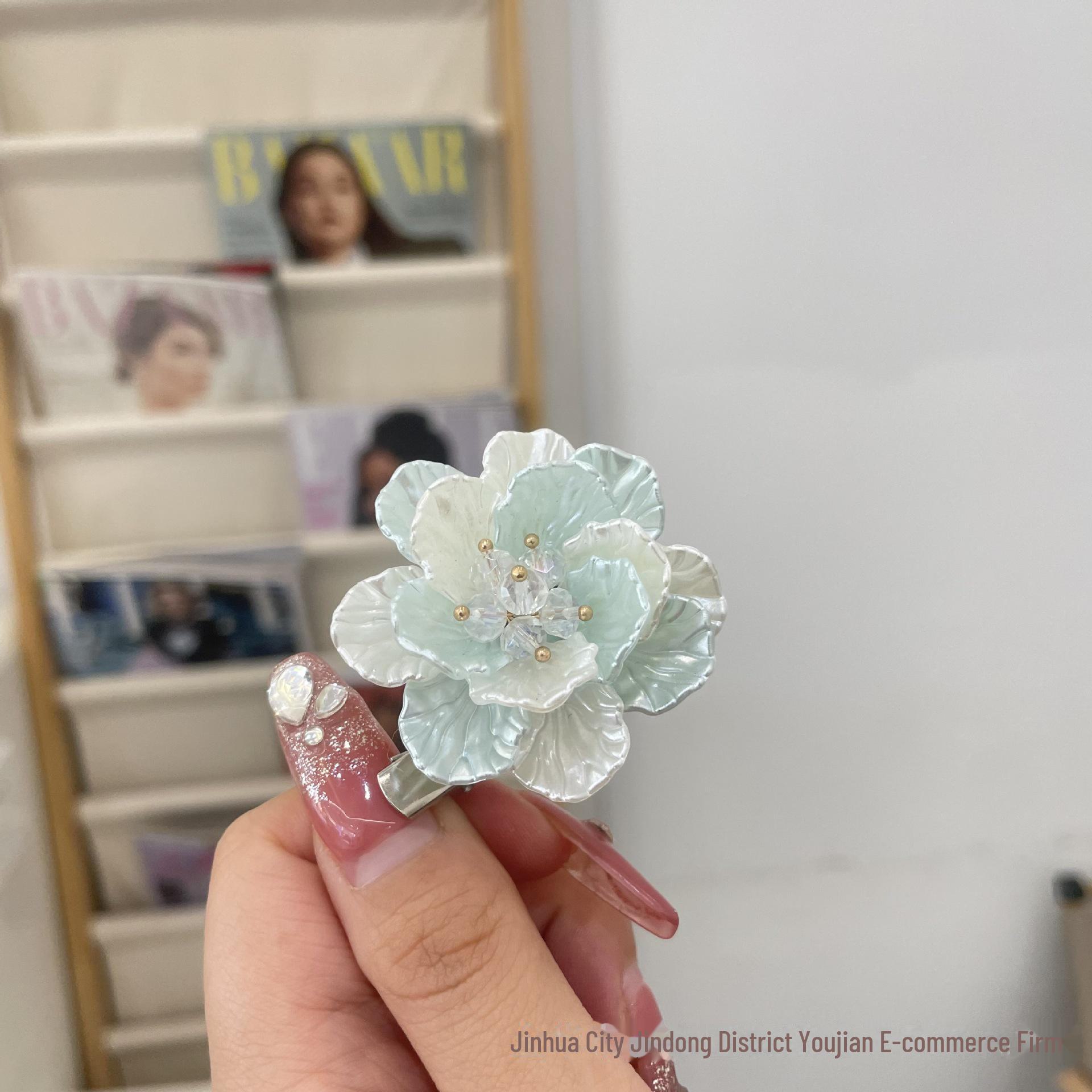 Элегантная французская жемчужина-брошь «Камелия»: Цветочная брошь в стиле Хепберн