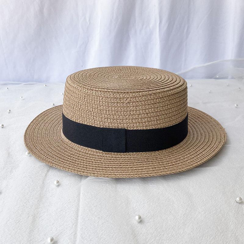 Элегантная шляпа от солнца во французском стиле с плоским верхом - классическая однотонная соломенная кепка в стиле джаз для летних пляжных выходов, можно стирать вручную, летняя пляжная шляпа one size бежевый