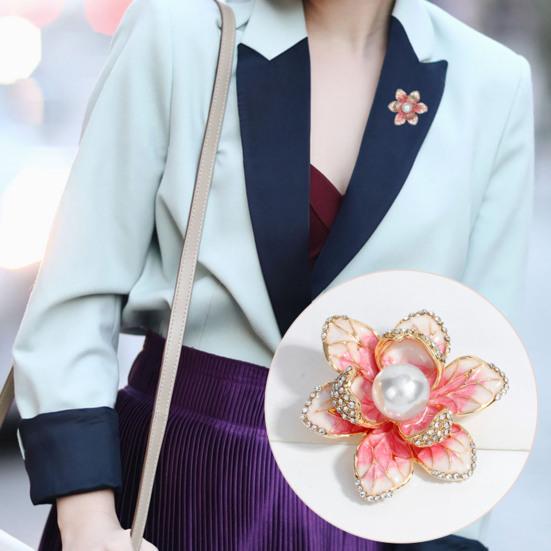 Элегантная эмалированная брошь в виде цветка бегонии, блестящие стразы, булавка из искусственного жемчуга, женское очаровательное платье, шаль, значок, аксессуары для пальто