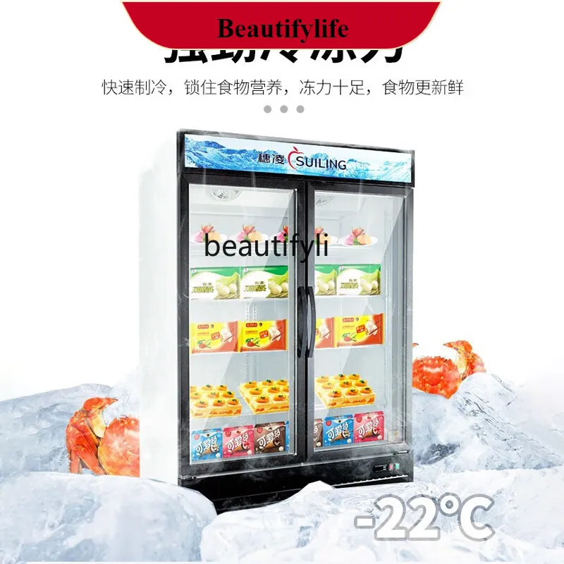 E132 Freezer Vertical Display Cabinet Commercial Air Cooling Frostless Double Door Ice Cream Durian Low-Temperature Cabinet Free