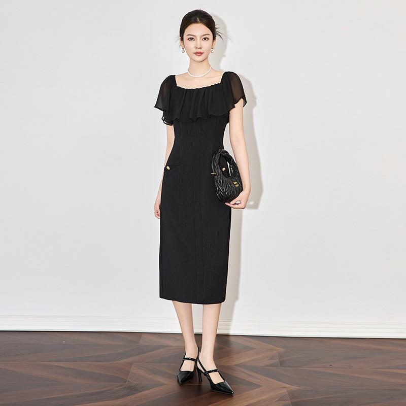 Элегантное вечернее платье South Oil с оборками – Приталенный силуэт, Дизайнерское платье класса люкс для женщин, Весенняя коллекция S чёрный