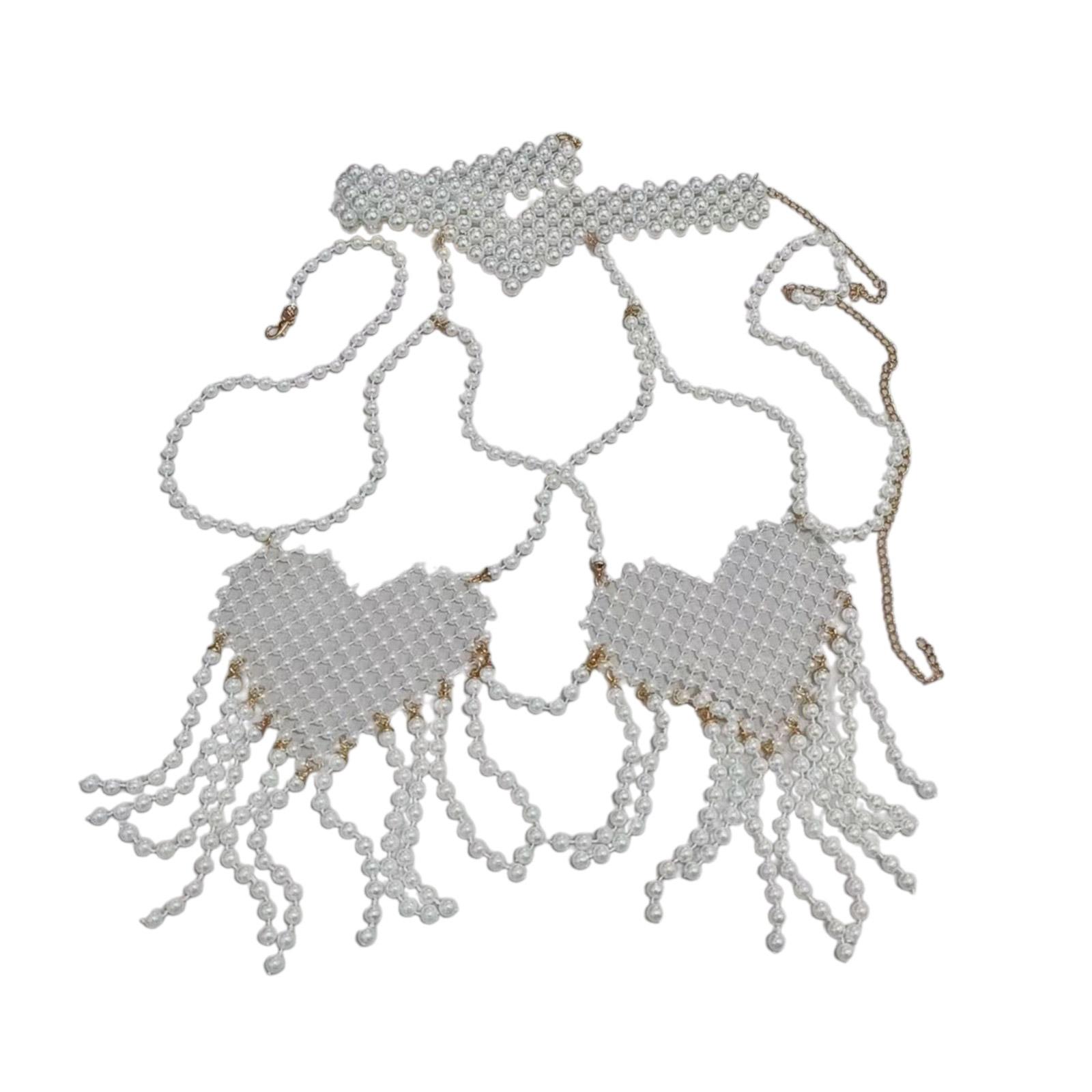 Элегантное жемчужное украшение для тела, ослепительная многослойная жемчужная цепочка с сердечками для женского праздничного наряда