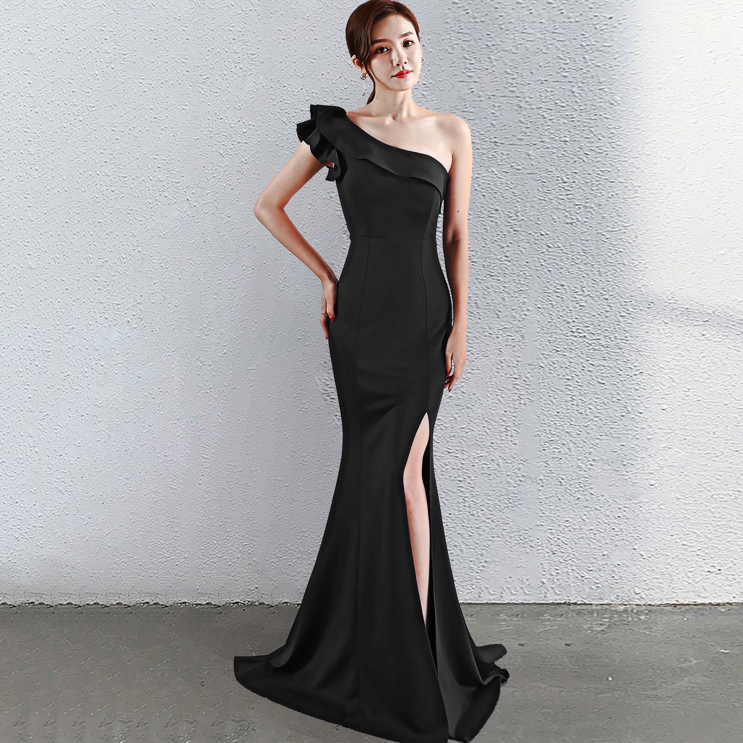 Элегантное женское вечернее платье на одно плечо с асимметричным подолом - Сексуальное, стройнящее, дизайн рыбий хвост для мероприятий и банкетов Medium чёрный