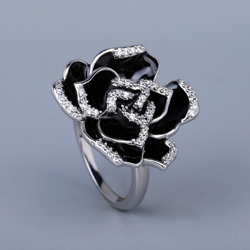 Элегантное женское кольцо из серебра 925 пробы, уникальное черное кольцо с цветком, эмалированные ювелирные изделия ручной работы, модные вечерние, помолвочные украшения
