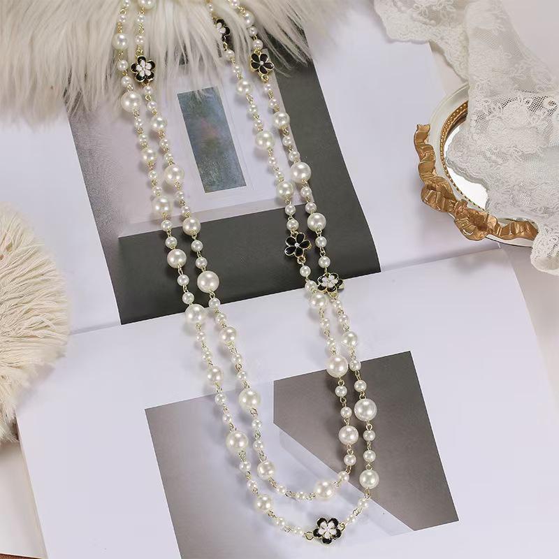 Элегантное женское ожерелье из жемчуга в виде четырехлистного клевера - Универсальная многослойная цепочка для свитера на осень/зиму
