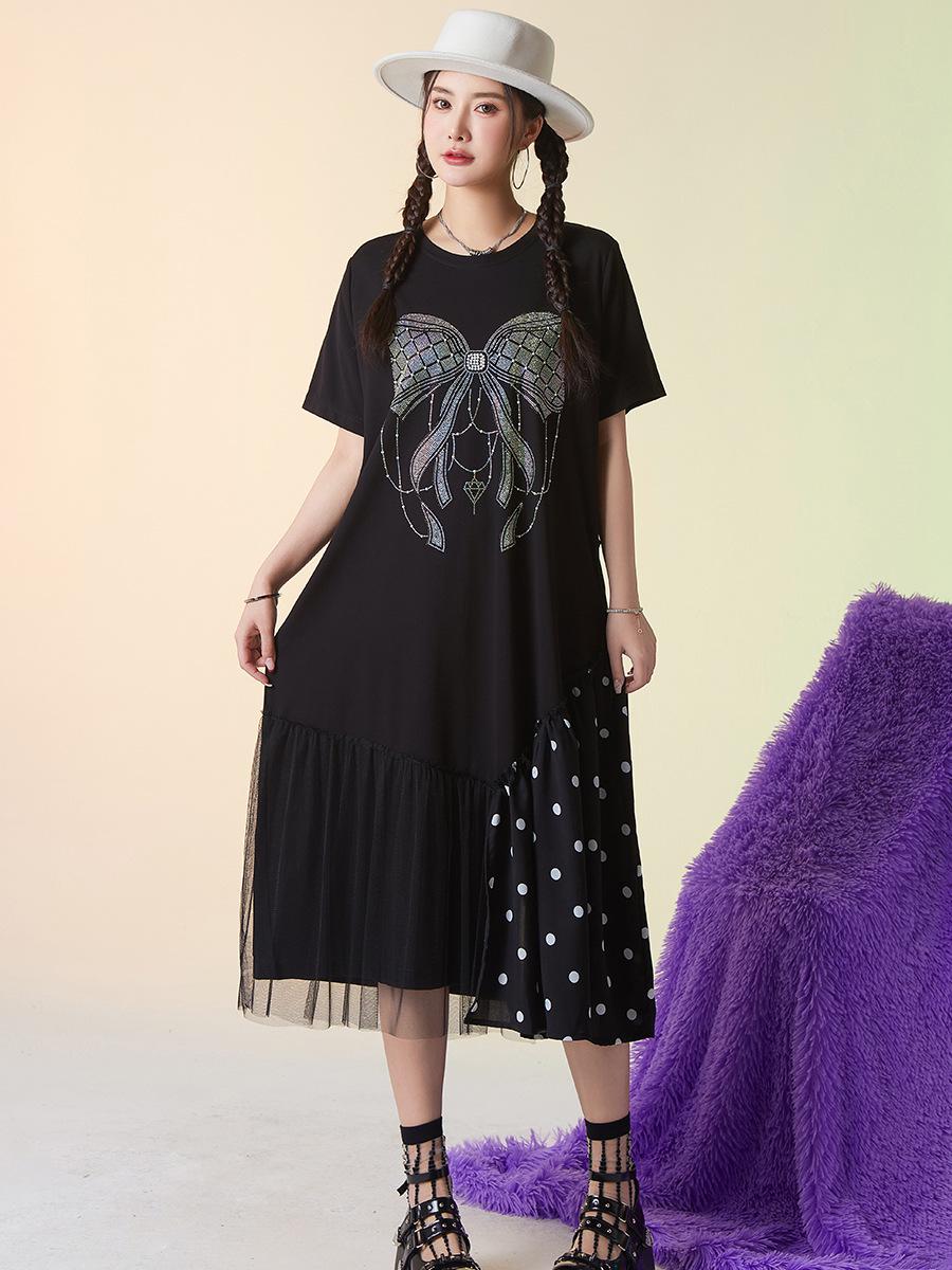 Элегантное короткое платье для женщин размера плюс с деталью из горячих бриллиантов - Лестное и стильное XXL чёрный