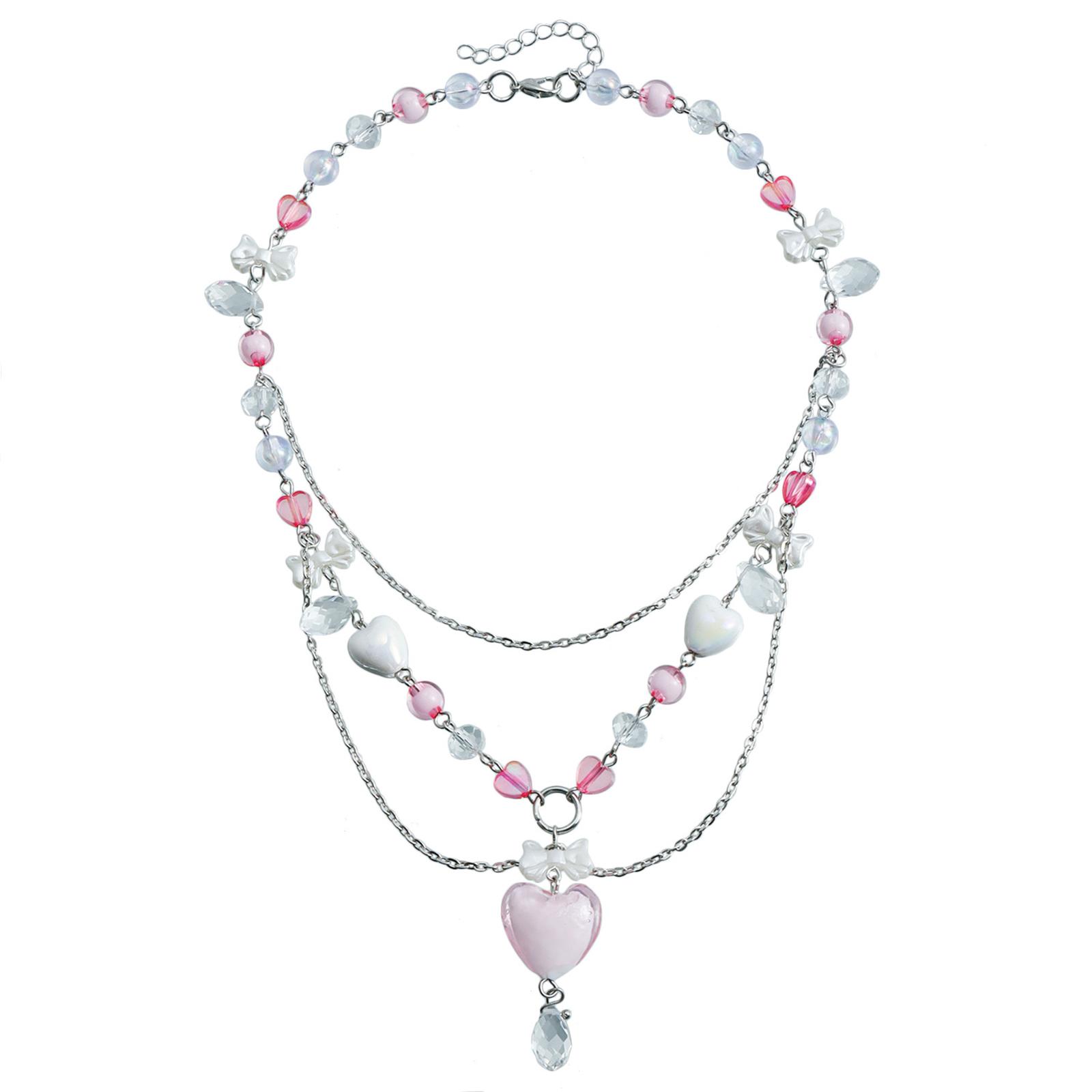 Элегантное многослойное ожерелье с подвеской в форме сердца, стильное украшение на шею, уникальное ожерелье, идеальный подарок для любителя моды розовый