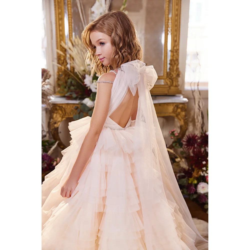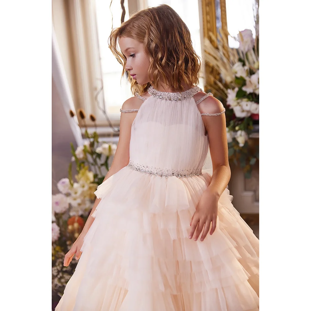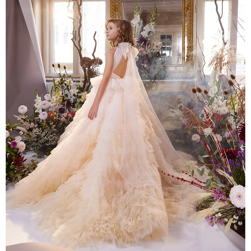 Элегантное многослойное платье с блестками, модное платье-трапеция со шлейфом и блестками, Роскошные платья для девочек на свадьбу