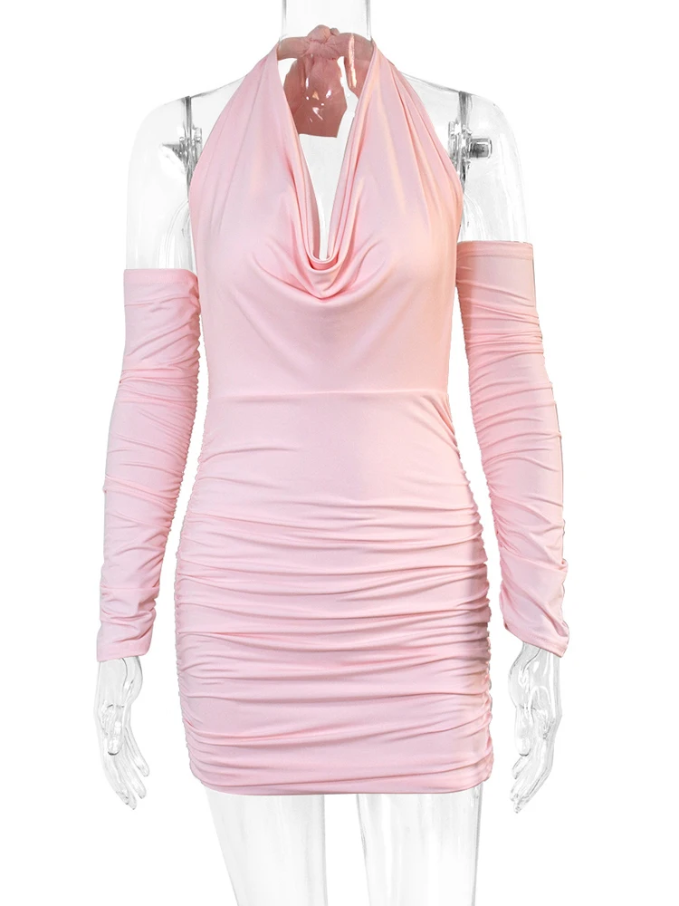 Элегантное облегающее мини-платье с лямкой на шее и открытой спиной, Соблазнительные вечерние платья для вечеринок и клубов, женская одежда...
