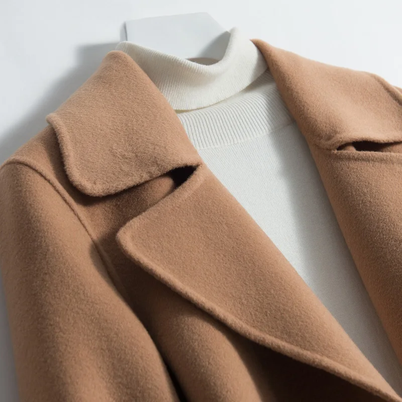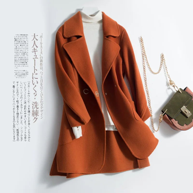 Элегантное осенне-зимнее пальто, Женское пальто из 100% шерсти, Женская длинная куртка, Корейская Двусторонняя шерстяная одежда, черное пальт...