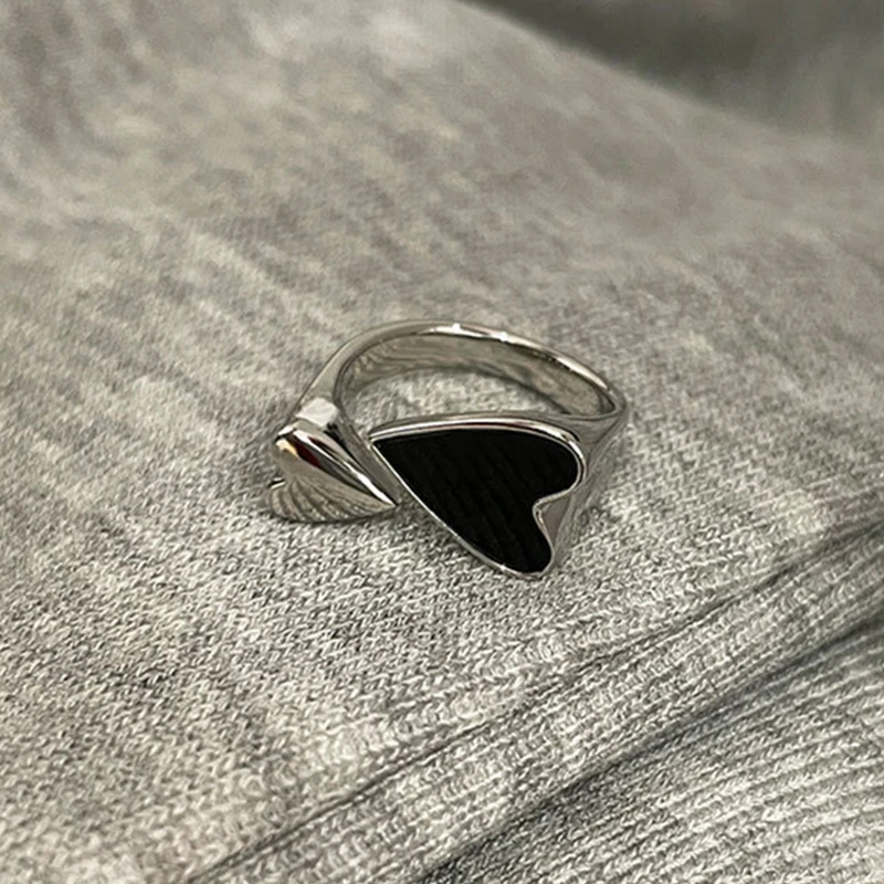 Элегантное открытое черное кольцо в форме сердца, модное женское серебряное кольцо на указательный палец, романтичное украшение для вечери...