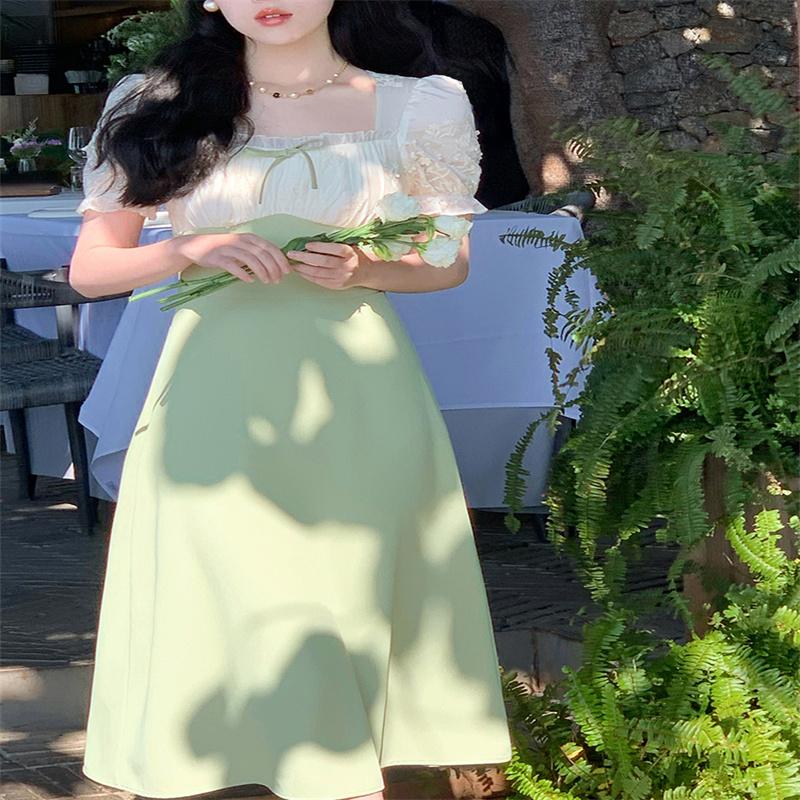 Элегантное платье миди во французском стиле, женское базовое вечернее платье с короткими рукавами, сказочное повседневное цельное платье, корейская мода, лето 2023 г.
