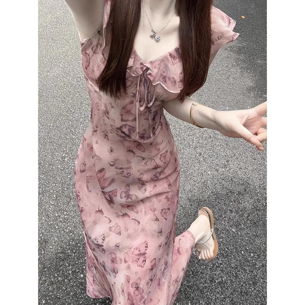 Элегантное платье с оборками и принтом бабочек, стройнящее фигуру - Коллекция Лето 2025 Extra Large