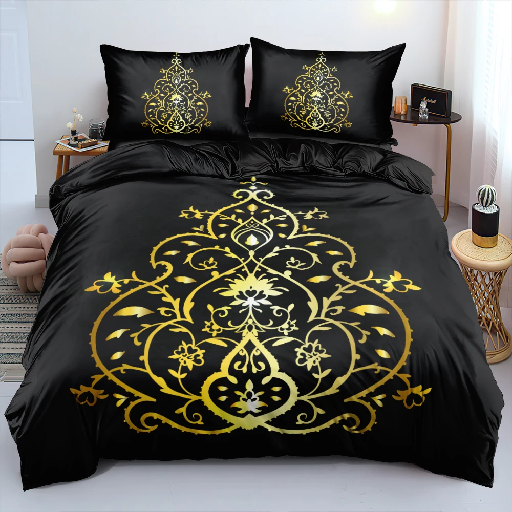 Элегантное стеганое одеяло с узором, наволочки, двойные, полные/двойные, королевские размеры, спальные комплекты постельного белья, Золотая...