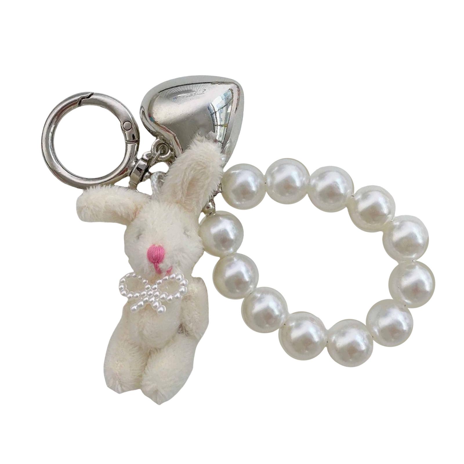 Элегантные Жемчужные Кролики Брелок Прочное Кольцо для Ключей Подвеска-Шарм в Форме Сердца Любви для Украшения Сумок Ручная Работа Аксессуар Подарки разноцветный