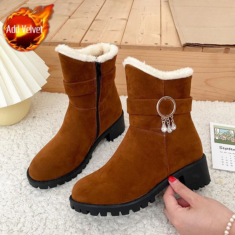 Элегантные ботильоны со стразами на среднем каблуке, плюшевые зимние ботинки для женщин, зимняя обувь с круглым носком для женщин, готические ботильоны в стиле Y2k, теплая обувь по акции 35