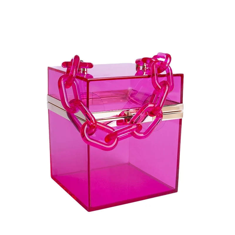 Ladies Handbags Women Bags New Arrival Acrylic Chain Portable Transparent Bucket Small Square clear handbags, As the pictures