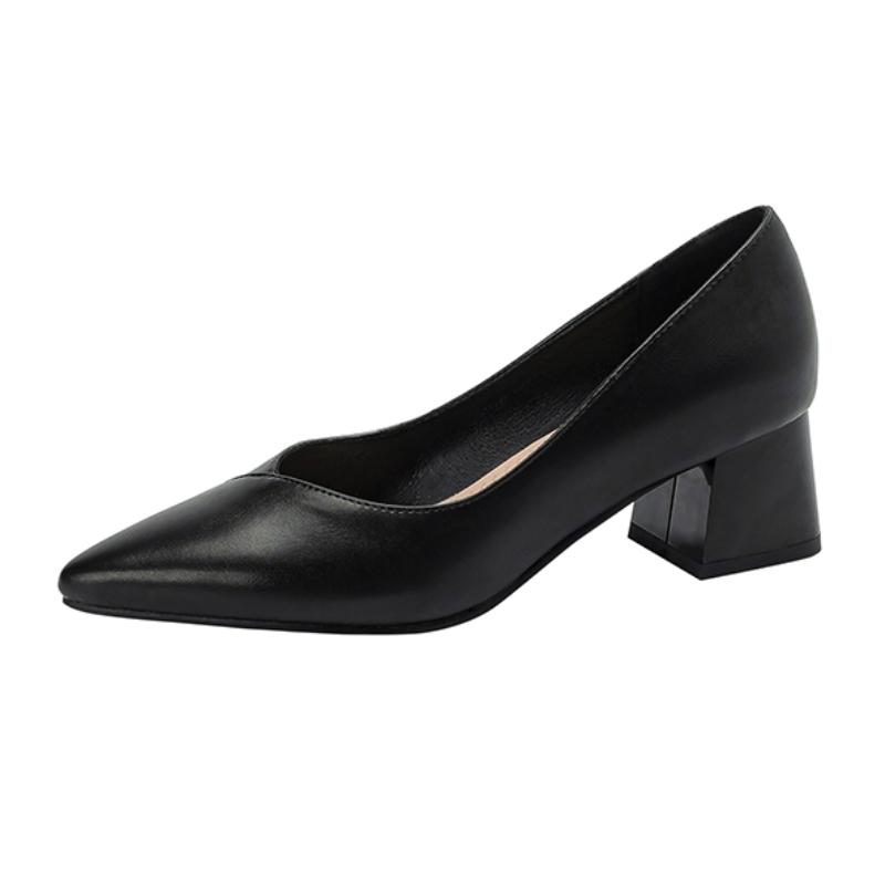 Элегантные женские туфли-лодочки на каблуке 2025 Мода Белые Черные На низком каблуке Вечерние Свадебные туфли Женские Туфли для платья Большой Размер 45 39 чёрный