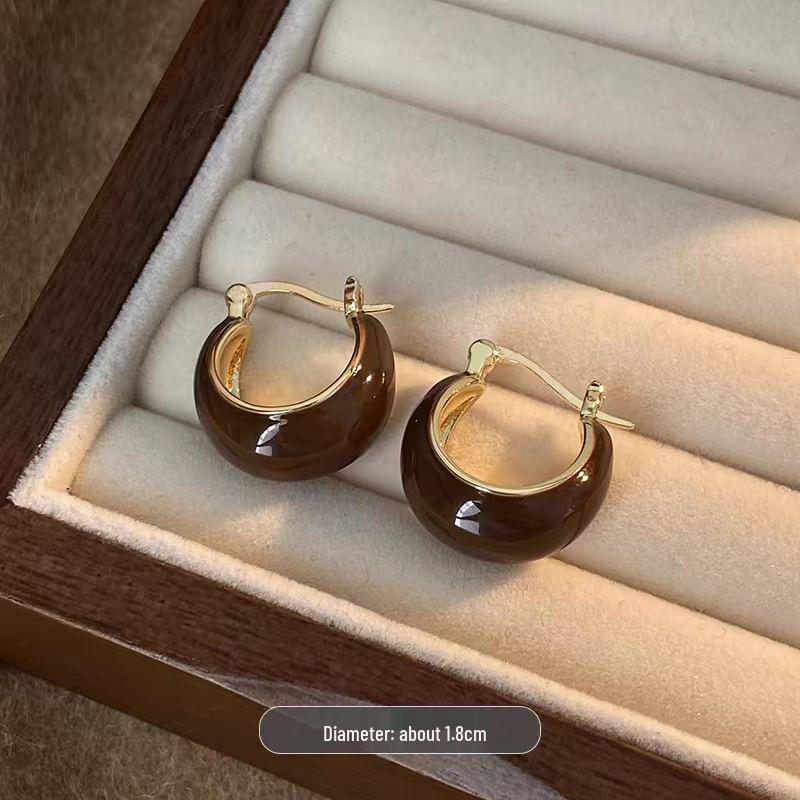 Элегантные коричневые геометрические серьги-пусеты из металла - Осенне-зимняя ретро-коллекция