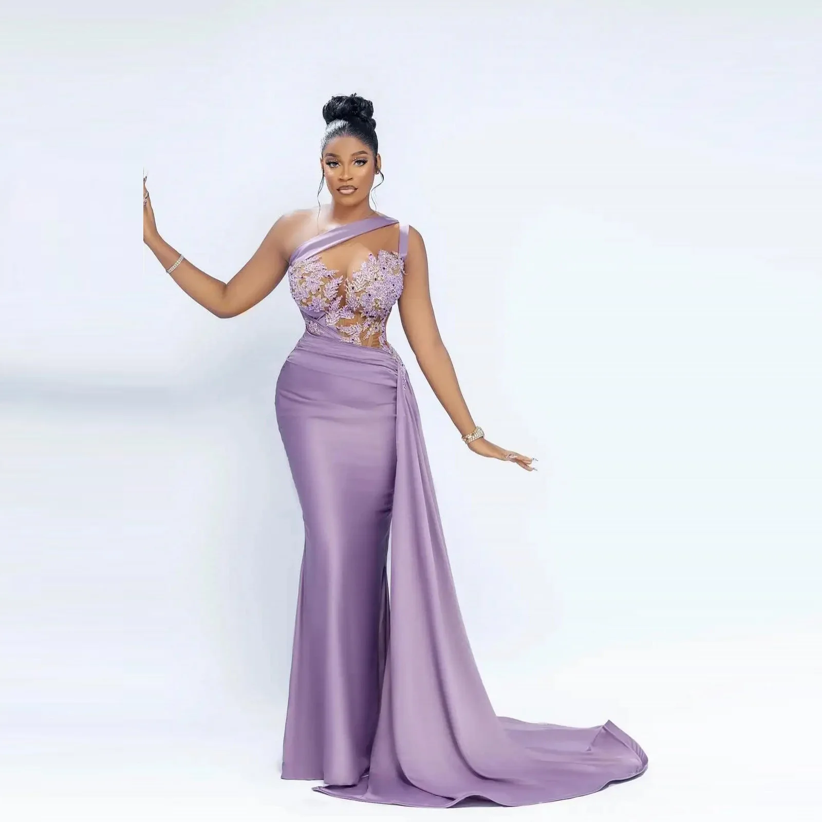 Элегантные лавандовые платья для выпускного вечера с аппликацией и бисером без рукавов с прозрачным вырезом Вечерние платья с длинным шлейфом Вечернее платье русалки