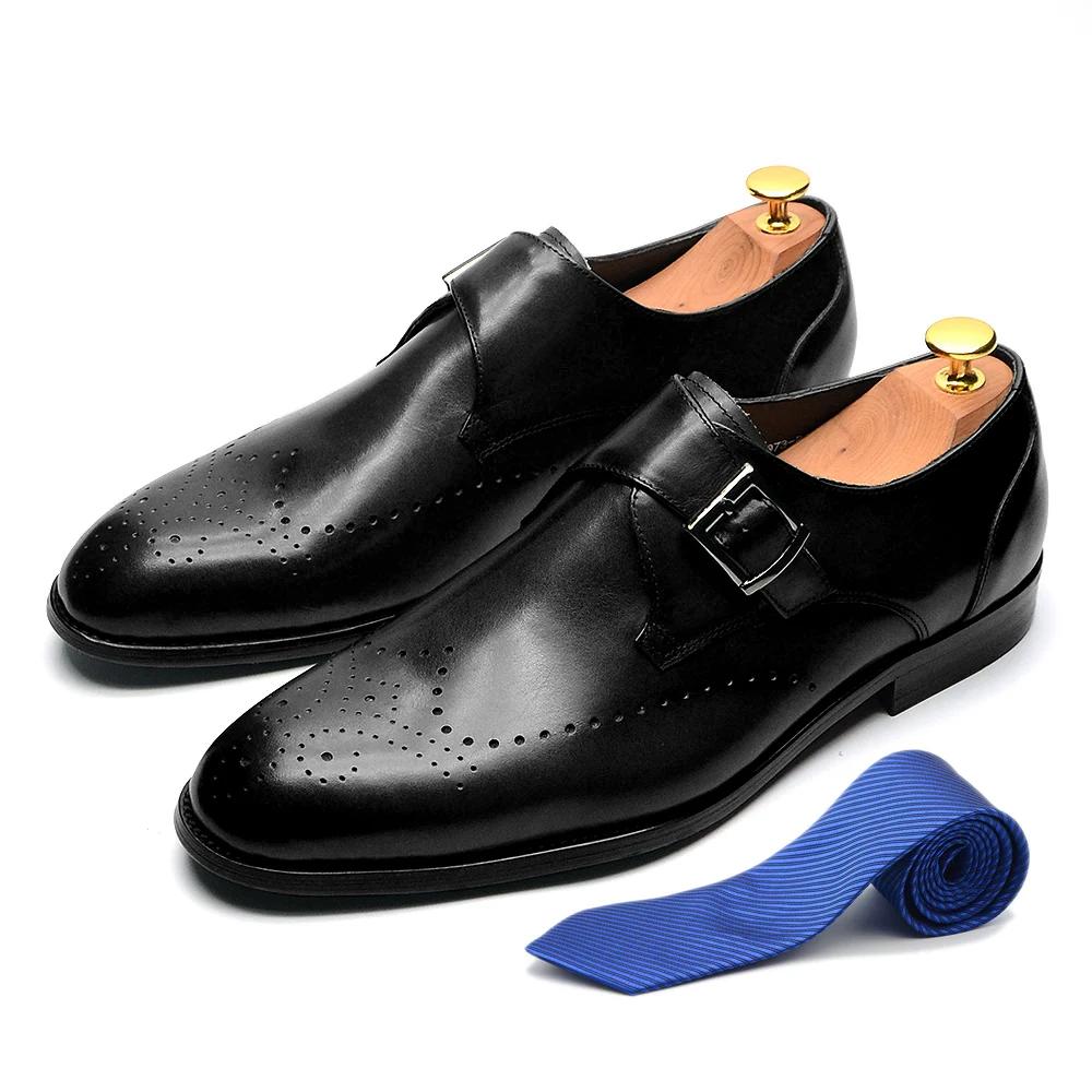 Элегантные мужские базовые туфли-монки из натуральной кожи с одной пряжкой, зеленые, черные, лоферы, броги, для вечеринки, свадьбы, формальные, мужская обувь 38