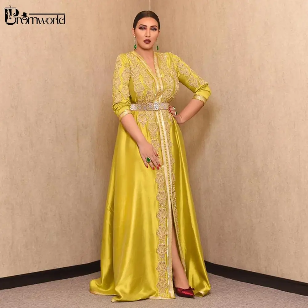 Элегантные мусульманские кружевные желтые вечерние платья, модель 2022 года, а-силуэт, официальное платье, платье для выпускного вечера, баль...