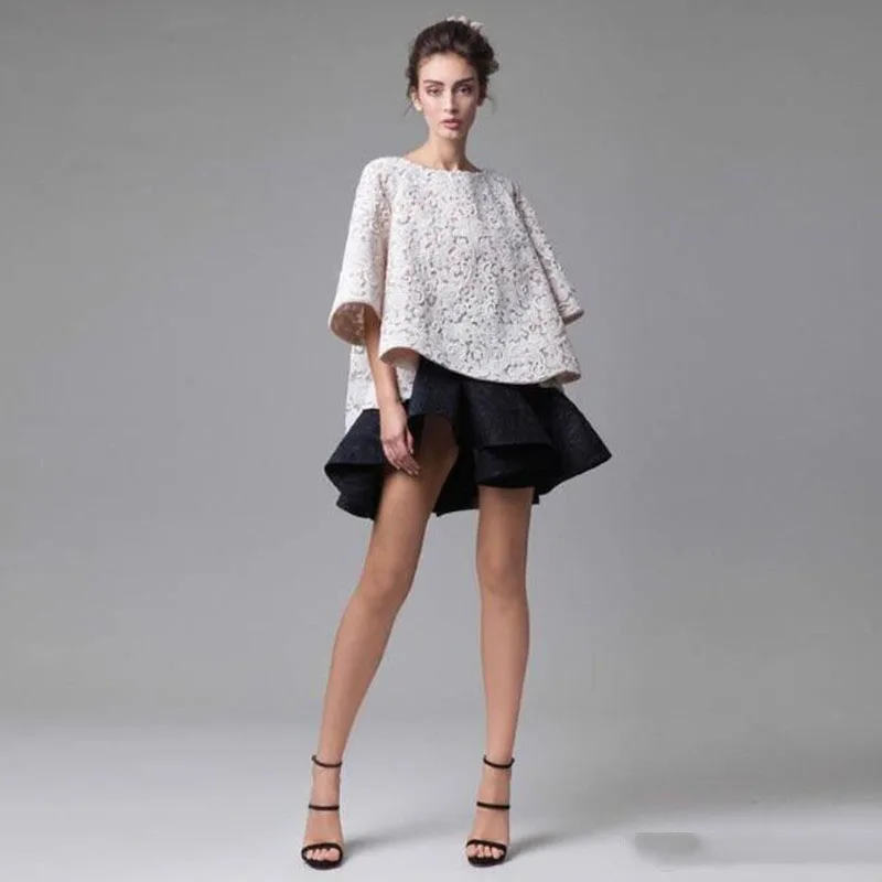 Элегантные низкие вечерние платья Hi, черные и белые платья выше колена с аппликацией, из двух предметов, платье для выпускного вечера с рука...
