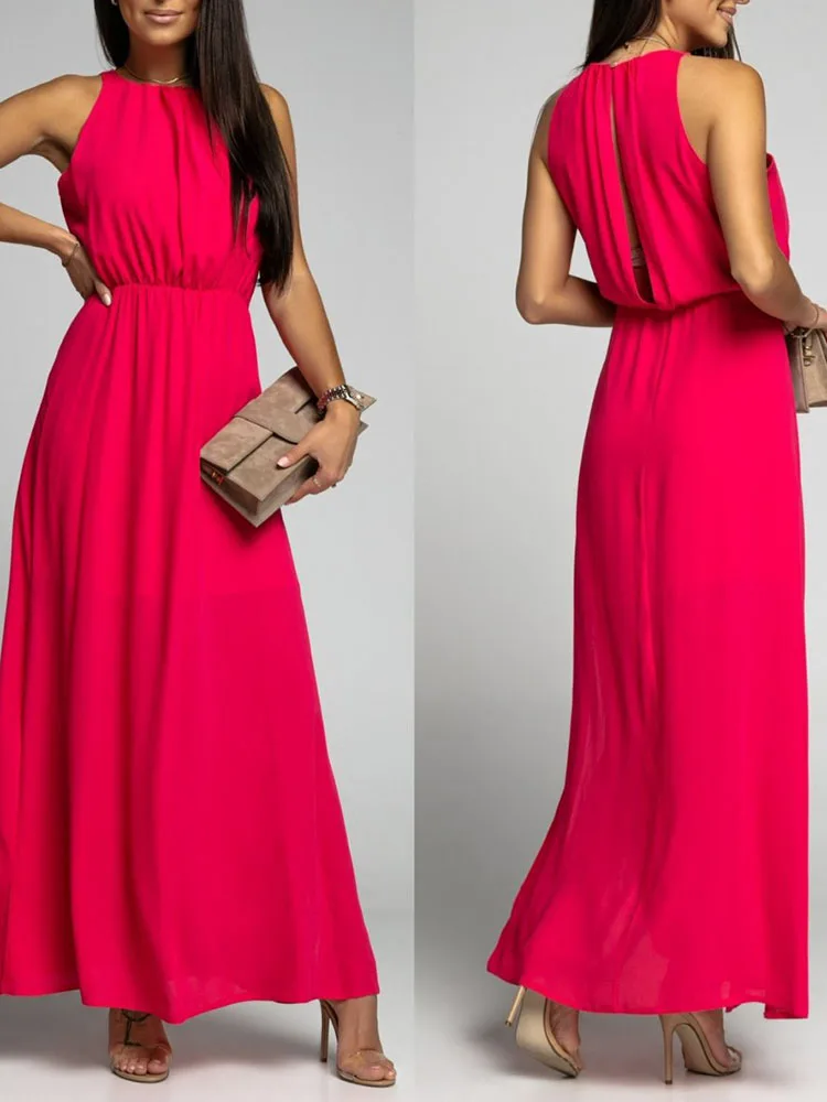 Yesexy 2022 New Sexy High Neck Elegant Midi Dress Sleeveless Solid Color Backless Bodycon Dress Summer Women Party Dress M0488