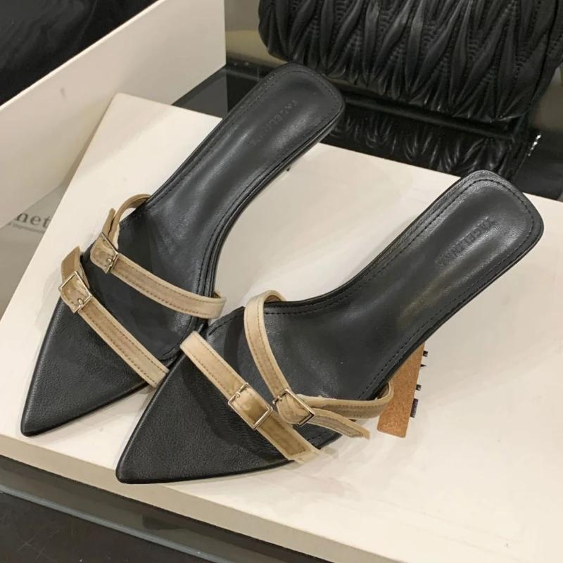 Элегантные туфли-лодочки с острым носком и низким каблуком для женщин, с узким ремешком и пряжкой, летние шлепанцы, удобные, нескользящие, пляжные лоферы 39 абрикосовый