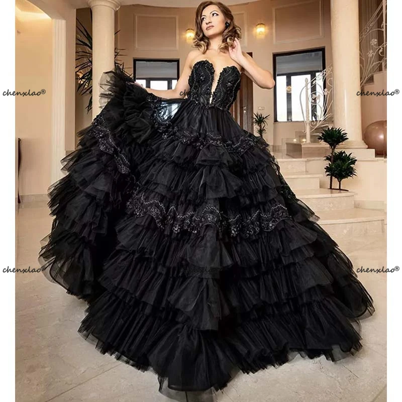 Элегантные черные вечерние платья без бретелек, современное кружевное платье с цветочным рисунком, женское сексуальное платье нового диза...