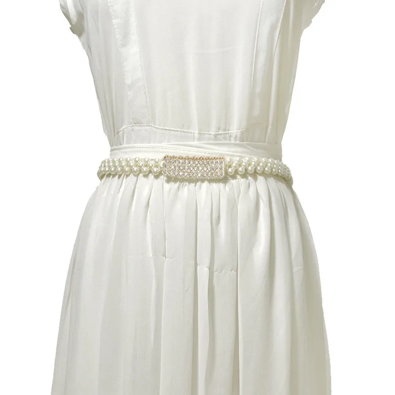 Элегантный женский пояс с жемчугом эластичная Пряжка жемчужный пояс с цепочкой женское платье ремешок с кристаллами жемчужный эластичный ...