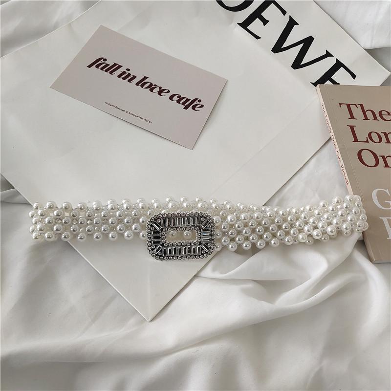 Элегантный женский пояс с жемчугом, эластичная пряжка, ремень с жемчужной цепочкой, женское платье для девочек, эластичный ремень с жемчугом, роскошный бренд белый
