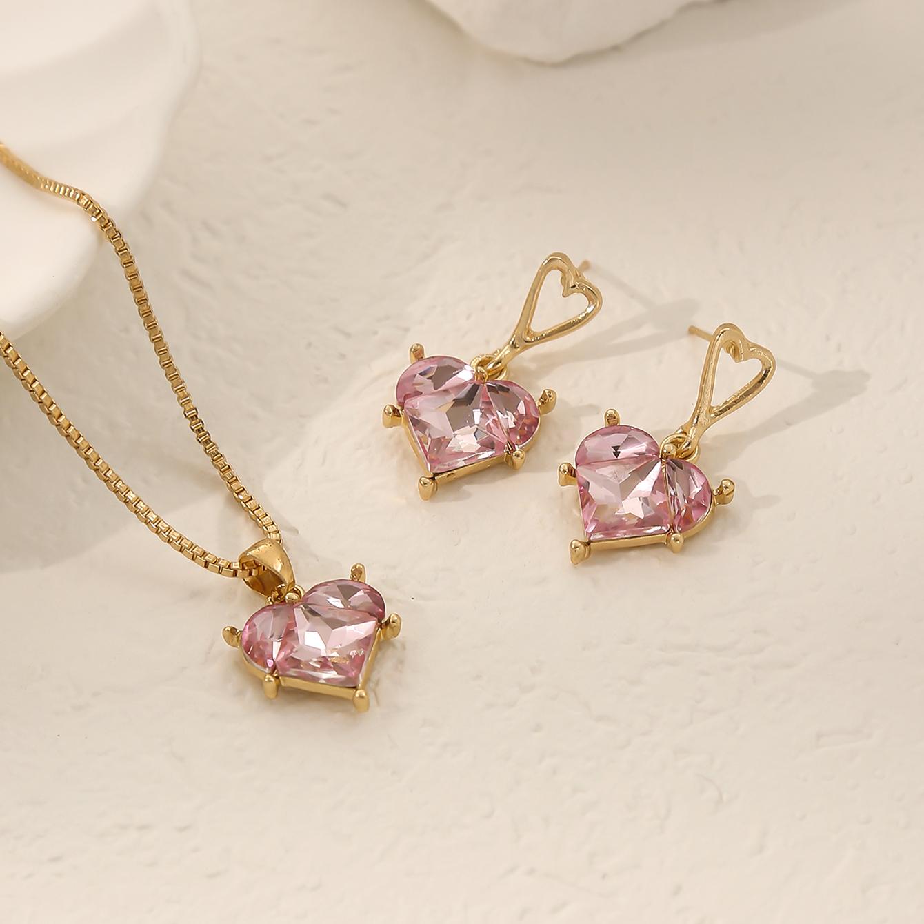 Элегантный чокер из коробочной цепочки с розовым кулоном в форме сердца, ожерелье, серьги, женский, для повседневной носки, для свиданий, циркон, идеальный подарок на День святого Валентина розовый