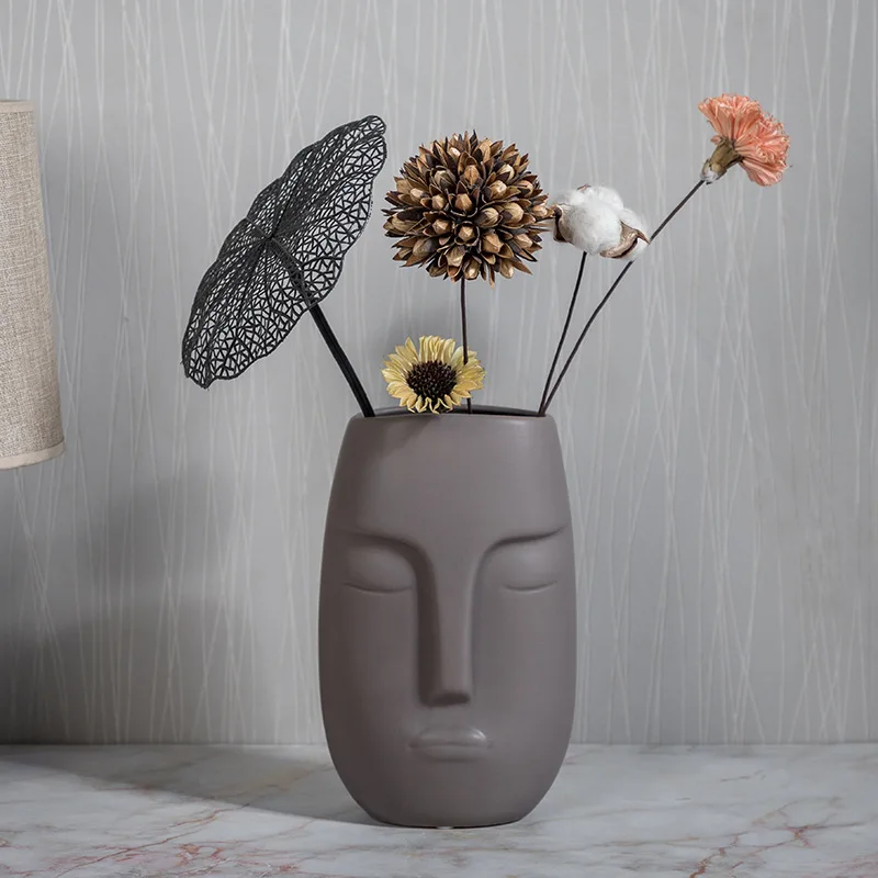 Simple Human Face Matt Ceramic Vase Creative Home Desktop Decoration Ornaments Porch Decoration Cool Beauty Flower Flower