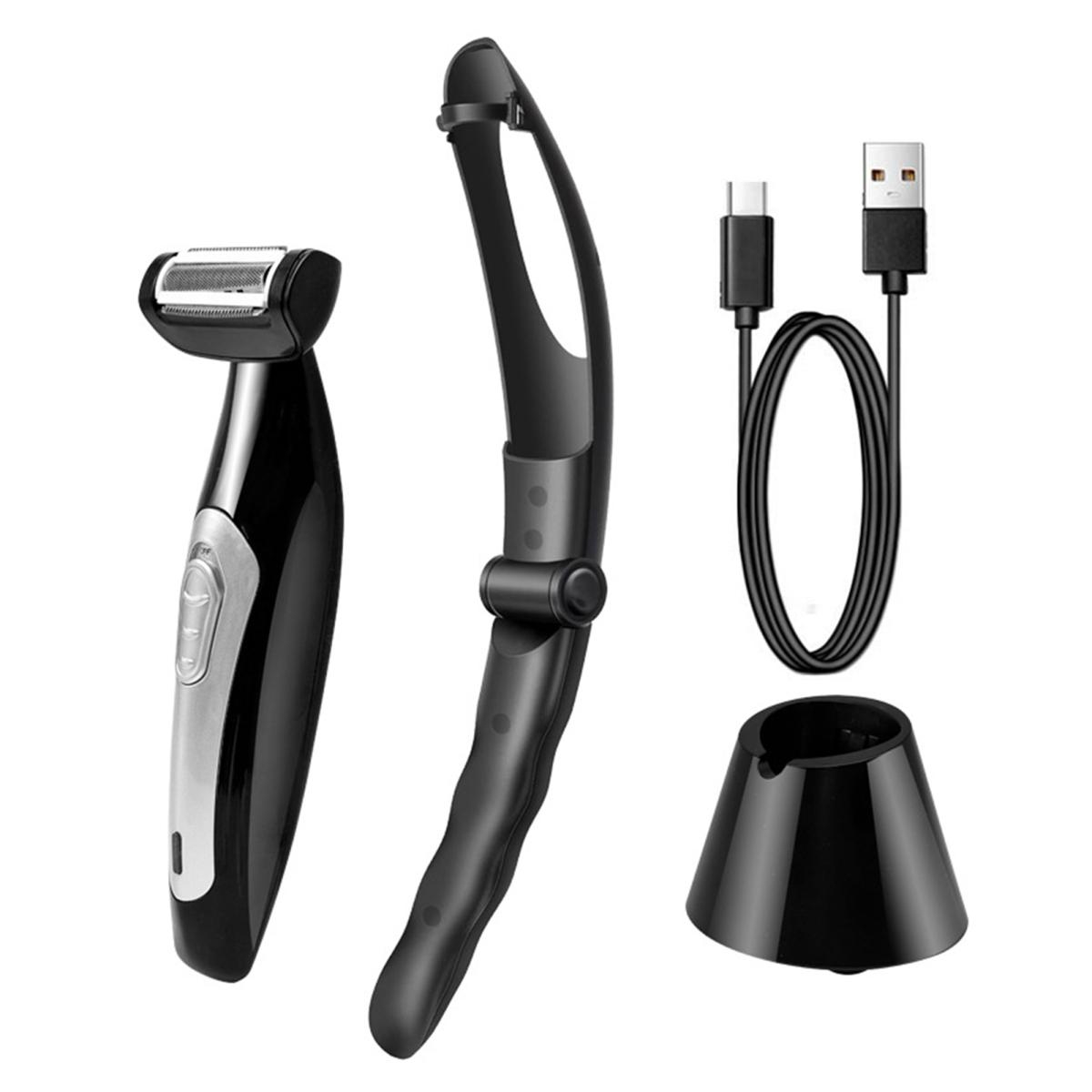 Электрическая бритва для спины с эргономичной ручкой IPX7 водонепроницаемый мужской триммер для волос на теле с зарядкой от USB ручной инструмент для удаления волос чёрный