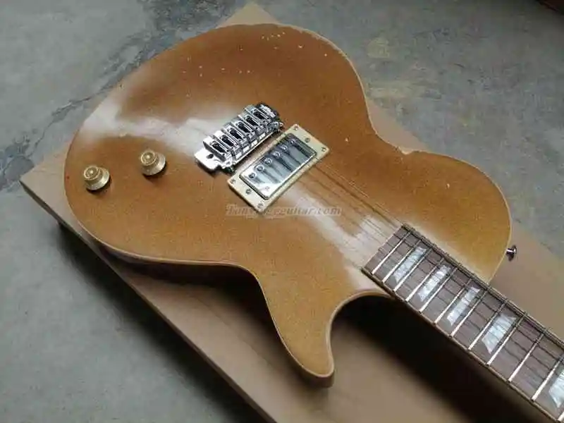 Электрическая гитара joeперри Gold Rush Axcess состаренная антикварная Золотая топовая гитара Корейская тремоло мост, одиночный хамбакер, шея ...