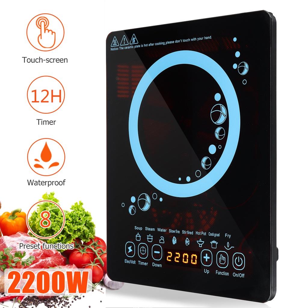 Электрическая индукционная плита 2200 Вт с сенсорным экраном, водонепроницаемая, с таймером, кристальная нагревательная панель, плита для хот-пота