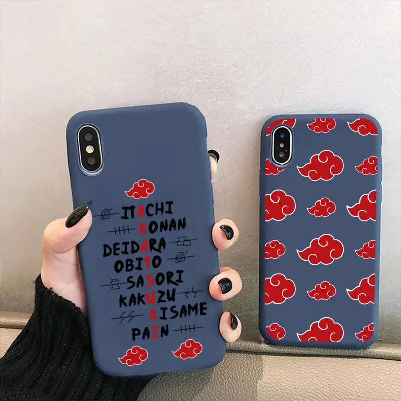 Japan Anime Naruto Akatsuki Phone Case for iPhone 13 12 mini 11 Pro XS MAX X XR 7 8 6 Plus Candy Color blue Soft Silicone Cover